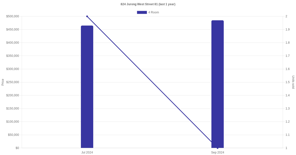 There were a total of 9 resale transactions in the last 3 years for units in block 824 Jurong West Street 81, with the latest one recorded in Sep 2024.