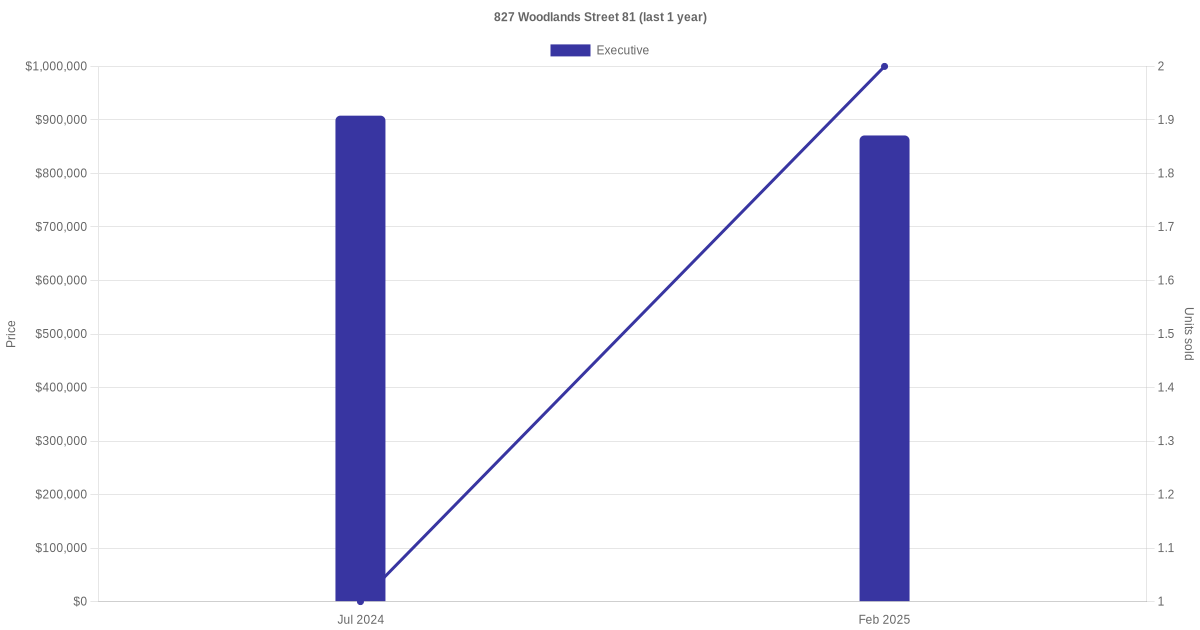 Here's a summary of the rental transactions and price trends for the executive units at 827 Woodlands Street 81.