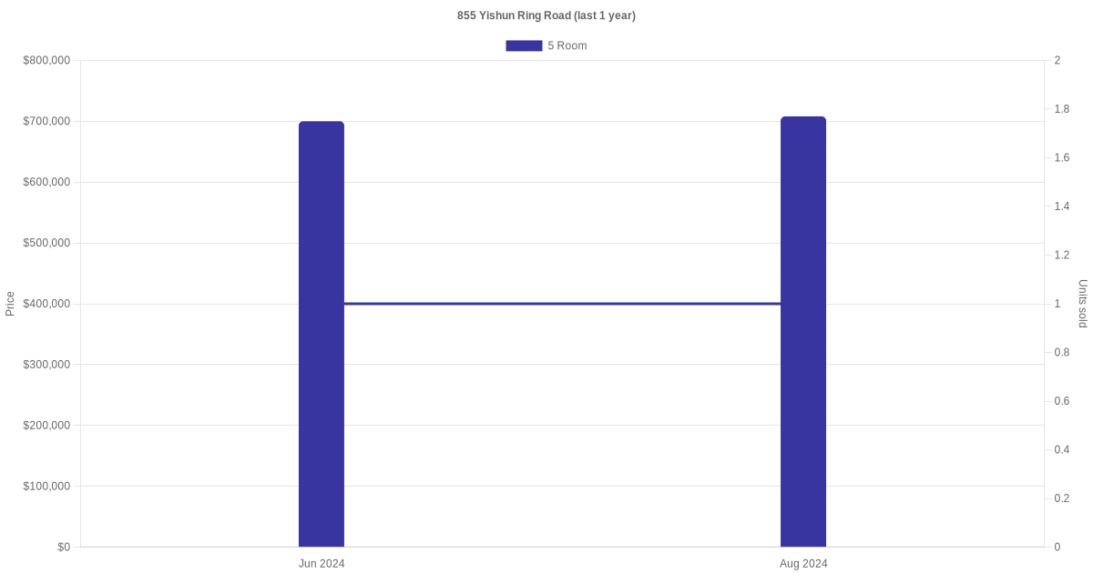 Below is a quick summary of the resale transactions volume and average price trends for the 4 room and 5 room units at 855 Yishun Ring Road.