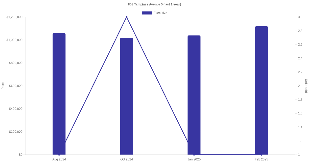 | Feb 2025 | $4,000 | Executive | Blk 858 Tampines Avenue 5 Executive | Tampines |