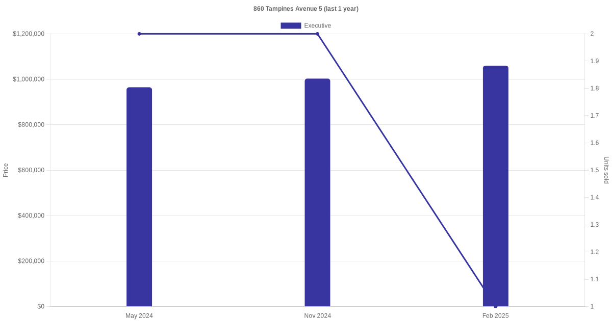 | Jan 2025 | $3,700 | Executive | Blk 860 Tampines Avenue 5 Executive | Tampines |