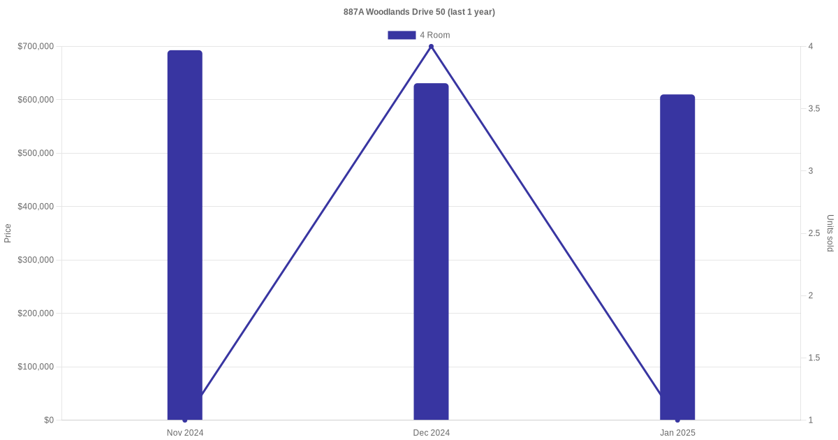 Here's a summary of the rental transactions and price trends for the 4 room units at 887A Woodlands Drive 50.