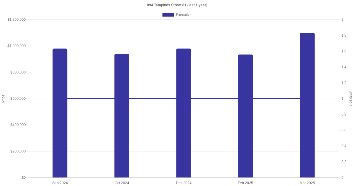 | Sep 2024 | $4,100 | Executive | Blk 894 Tampines Street 81 Executive | Tampines |