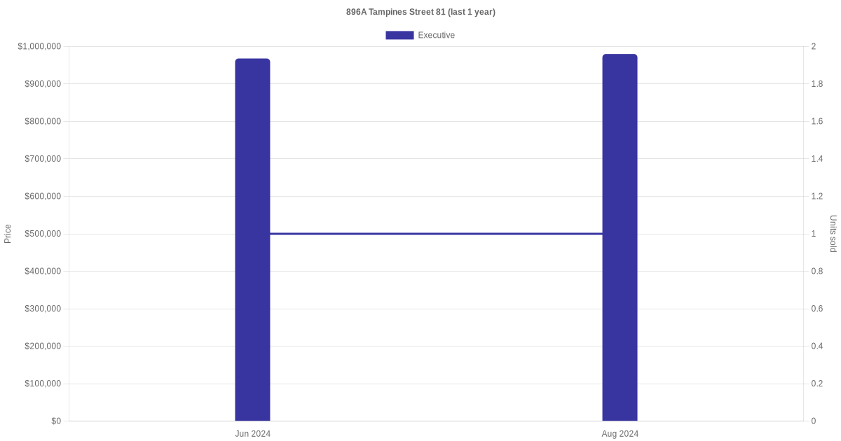 Below is a quick summary of the resale transactions volume and average price trends for the executive units at 896A Tampines Street 81.
