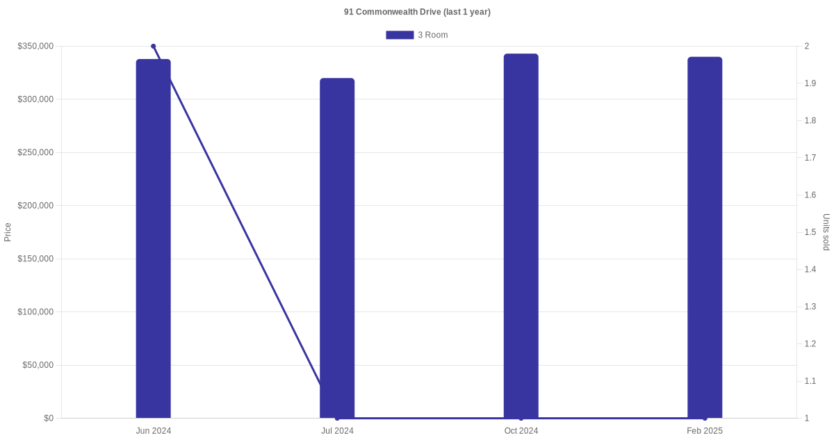 Below is a quick summary of the resale transactions volume and average price trends for the 3 room units at 91 Commonwealth Drive.