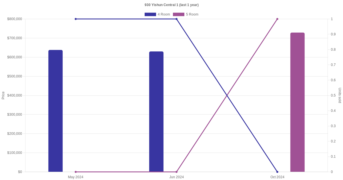 There were a total of 5 resale transactions in the last 3 years for units in block 930 Yishun Central 1, with the latest one recorded in Oct 2024.