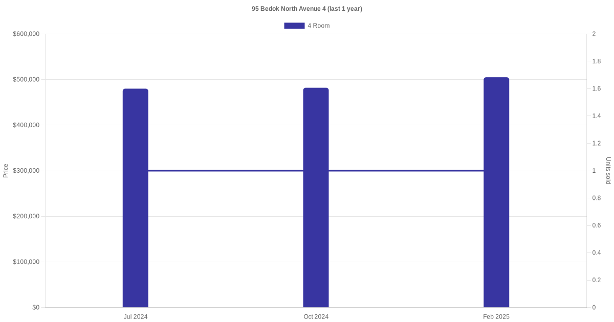 There were a total of 4 resale transactions in the last 3 years for units in block 95 Bedok North Avenue 4, with the latest one recorded in Jul 2025.