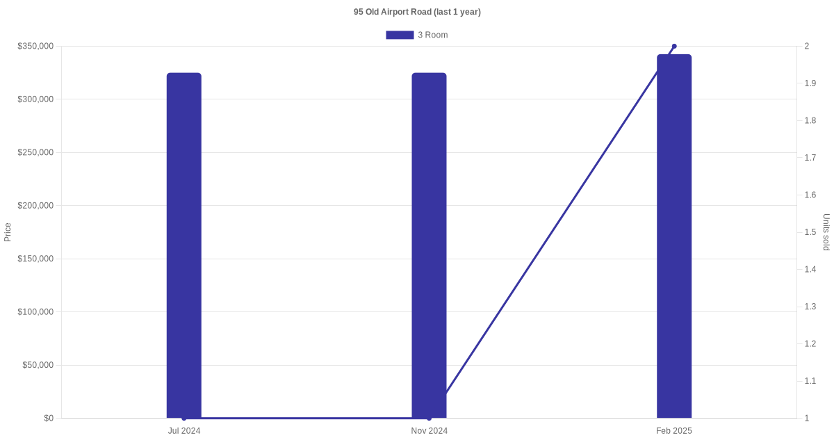 Below is a quick summary of the resale transactions volume and average price trends for the 3 room units at 95 Old Airport Road.