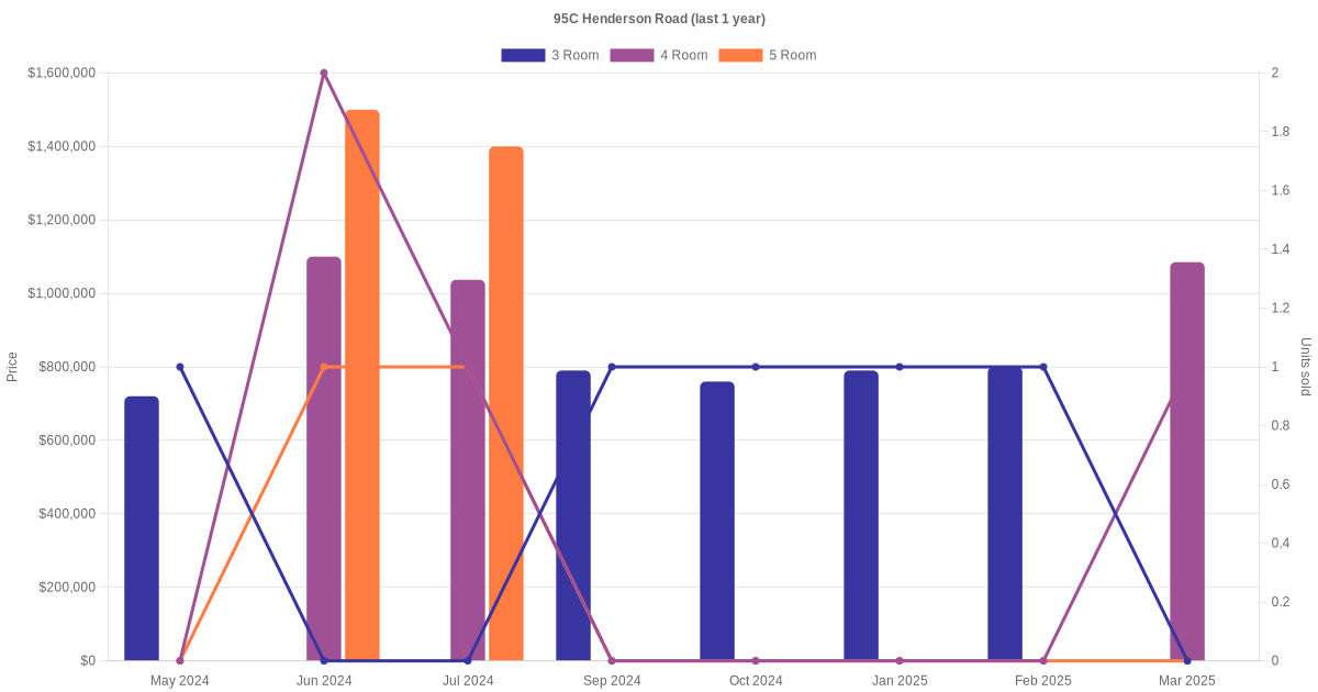 Here's a summary of the rental transactions and price trends for the 3 room, 4 room and 5 room units at 95C Henderson Road.