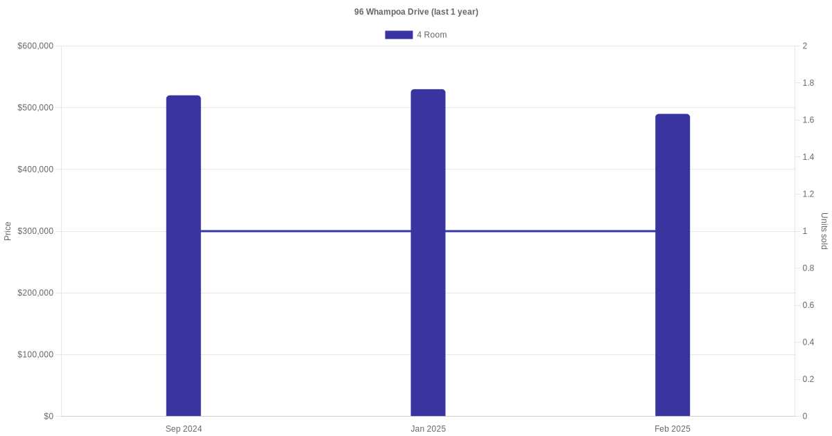 There were a total of 4 resale transactions in the last 3 years for units in block 96 Whampoa Drive, with the latest one recorded in Sep 2025.