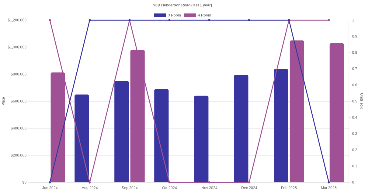 | Mar 2025 | $1,028,888 | $12,396 | 4 Room | Blk 96B Henderson Road 4 Room / 83 sqm | 25 to 27 | 83 sqm | Model A | 2019 |