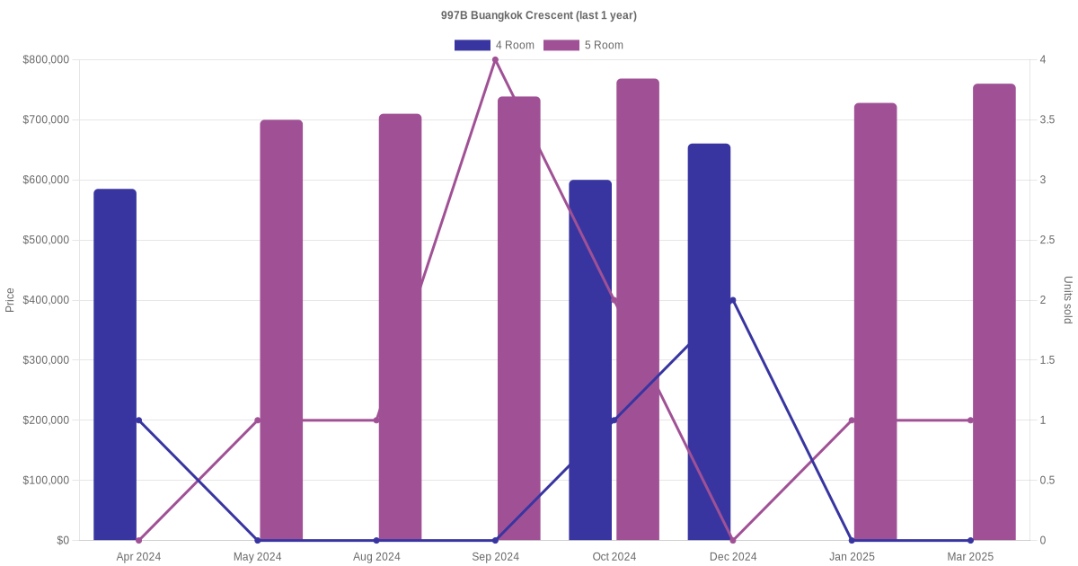 Here's a summary of the rental transactions and price trends for the 4 room and 5 room units at 997B Buangkok Crescent.