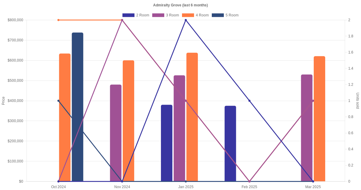 There were a total of 197 resale transactions in the last 3 years for HDB flats at Admiralty Grove. The latest recorded transaction was in Dec 2025.
