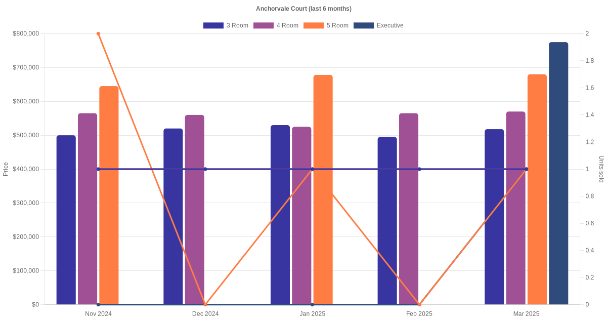 There were a total of 95 resale transactions in the last 3 years for HDB flats at Anchorvale Court. The latest recorded transaction was in Jan 2026.