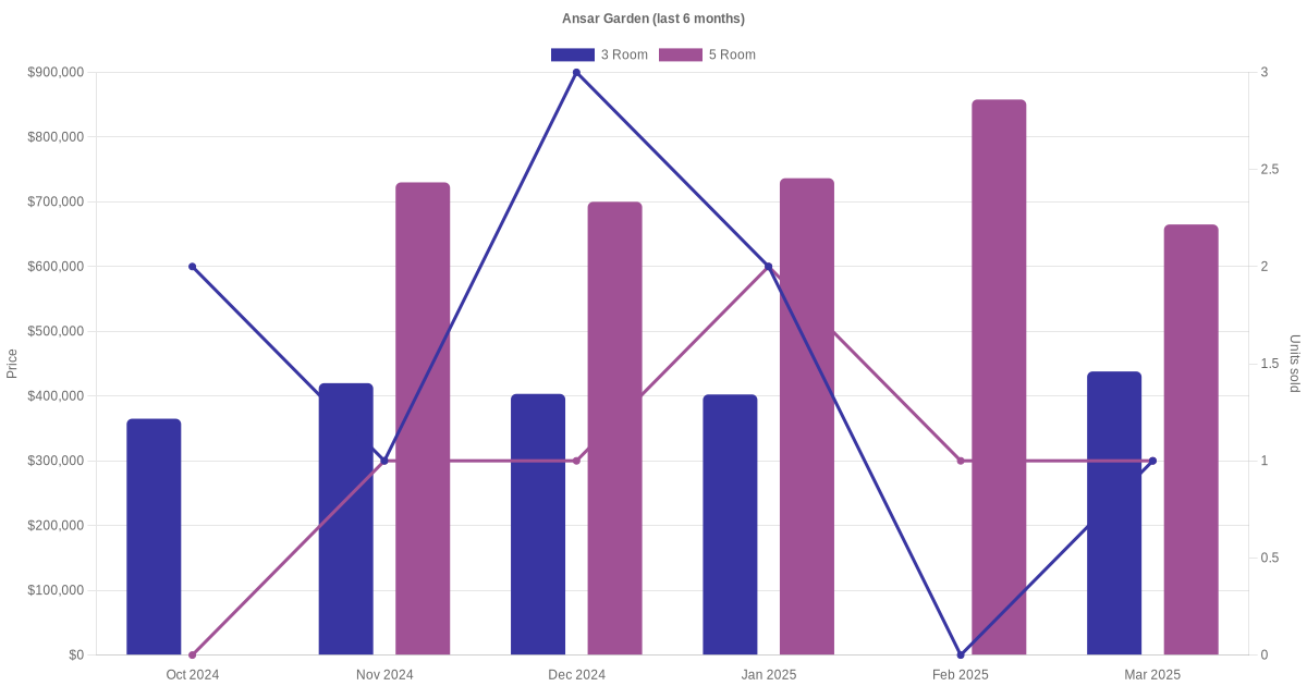 There were a total of 76 resale transactions in the last 3 years for HDB flats at Ansar Garden. The latest recorded transaction was in Dec 2025.