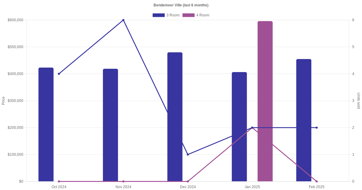 There were a total of 59 resale transactions in the last 3 years for HDB flats at Bendemeer Ville. The latest recorded transaction was in Dec 2025.