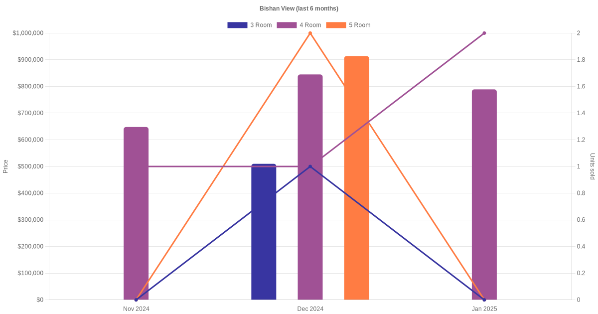 There were a total of 94 resale transactions in the last 3 years for HDB flats at Bishan View. The latest recorded transaction was in Jan 2026.