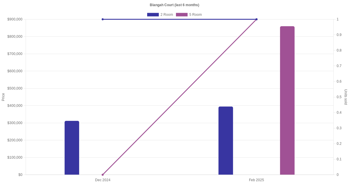 There were a total of 41 resale transactions in the last 3 years for HDB flats at Blangah Court. The latest recorded transaction was in Jan 2026.