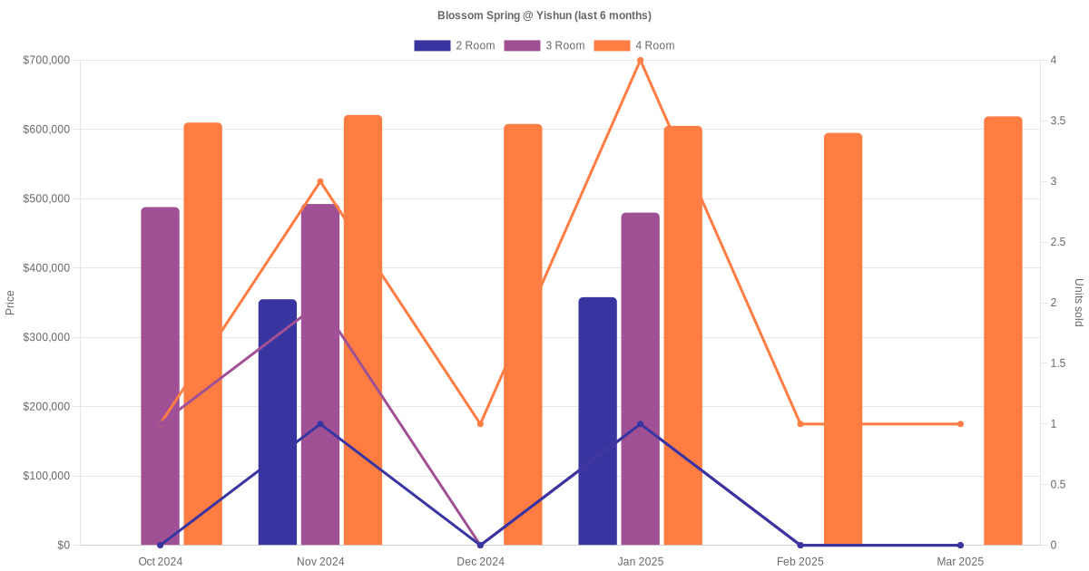 There were a total of 137 resale transactions in the last 3 years for HDB flats at Blossom Spring @ Yishun. The latest recorded transaction was in Dec 2025.