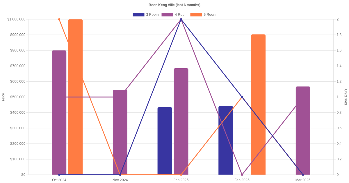 There were a total of 70 resale transactions in the last 3 years for HDB flats at Boon Keng Ville. The latest recorded transaction was in Dec 2025.