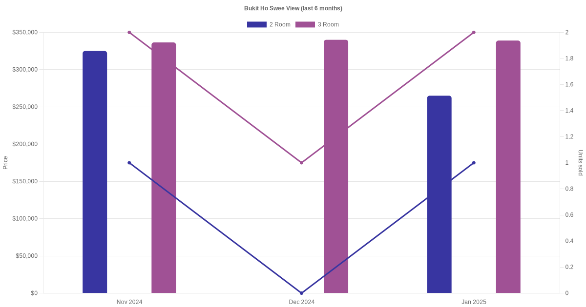 There were a total of 34 resale transactions in the last 3 years for HDB flats at Bukit Ho Swee View. The latest recorded transaction was in Jan 2026.