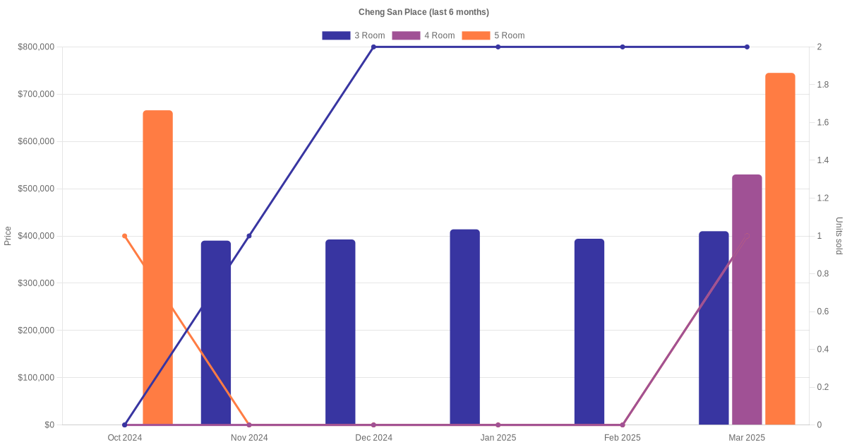 There were a total of 73 resale transactions in the last 3 years for HDB flats at Cheng San Place. The latest recorded transaction was in Dec 2025.