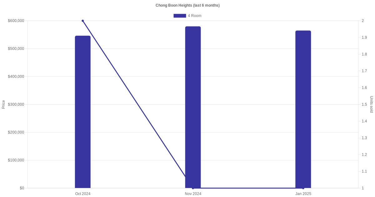 There were a total of 19 resale transactions in the last 3 years for HDB flats at Chong Boon Heights. The latest recorded transaction was in Aug 2025.