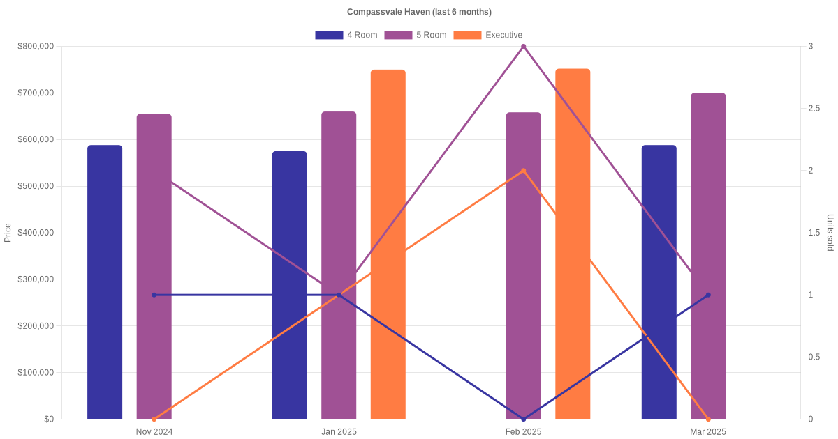 There were a total of 85 resale transactions in the last 3 years for HDB flats at Compassvale Haven. The latest recorded transaction was in Jan 2026.