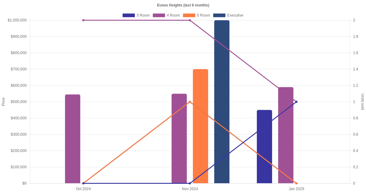 There were a total of 76 resale transactions in the last 3 years for HDB flats at Eunos Heights. The latest recorded transaction was in Jan 2026.