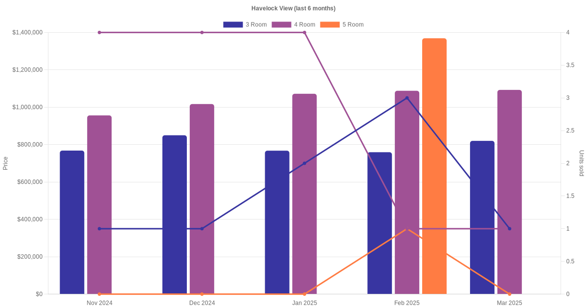 There were a total of 87 resale transactions in the last 3 years for HDB flats at Havelock View. The latest recorded transaction was in Dec 2025.