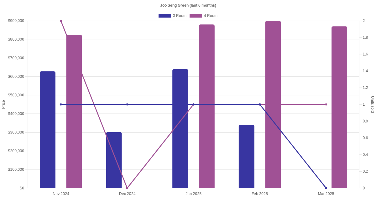 There were a total of 73 resale transactions in the last 3 years for HDB flats at Joo Seng Green. The latest recorded transaction was in Nov 2025.