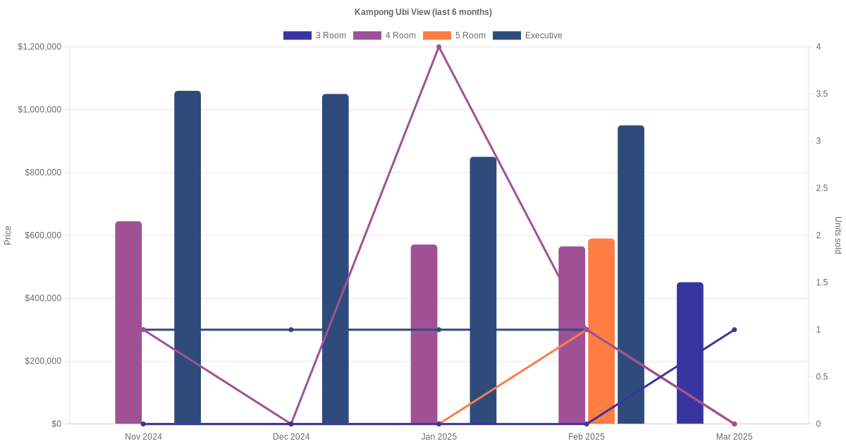 There were a total of 111 resale transactions in the last 3 years for HDB flats at Kampong Ubi View. The latest recorded transaction was in Dec 2025.