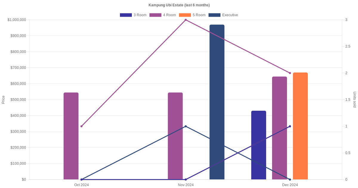 There were a total of 67 resale transactions in the last 3 years for HDB flats at Kampung Ubi Estate. The latest recorded transaction was in Dec 2025.