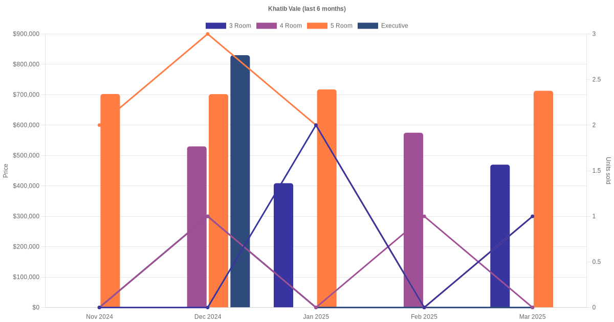 There were a total of 123 resale transactions in the last 3 years for HDB flats at Khatib Vale. The latest recorded transaction was in Jan 2026.