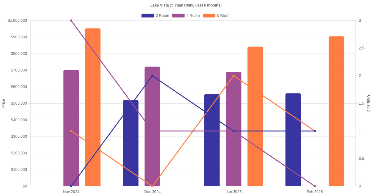 There were a total of 60 resale transactions in the last 3 years for HDB flats at Lake Vista @ Yuan Ching. The latest recorded transaction was in Nov 2025.