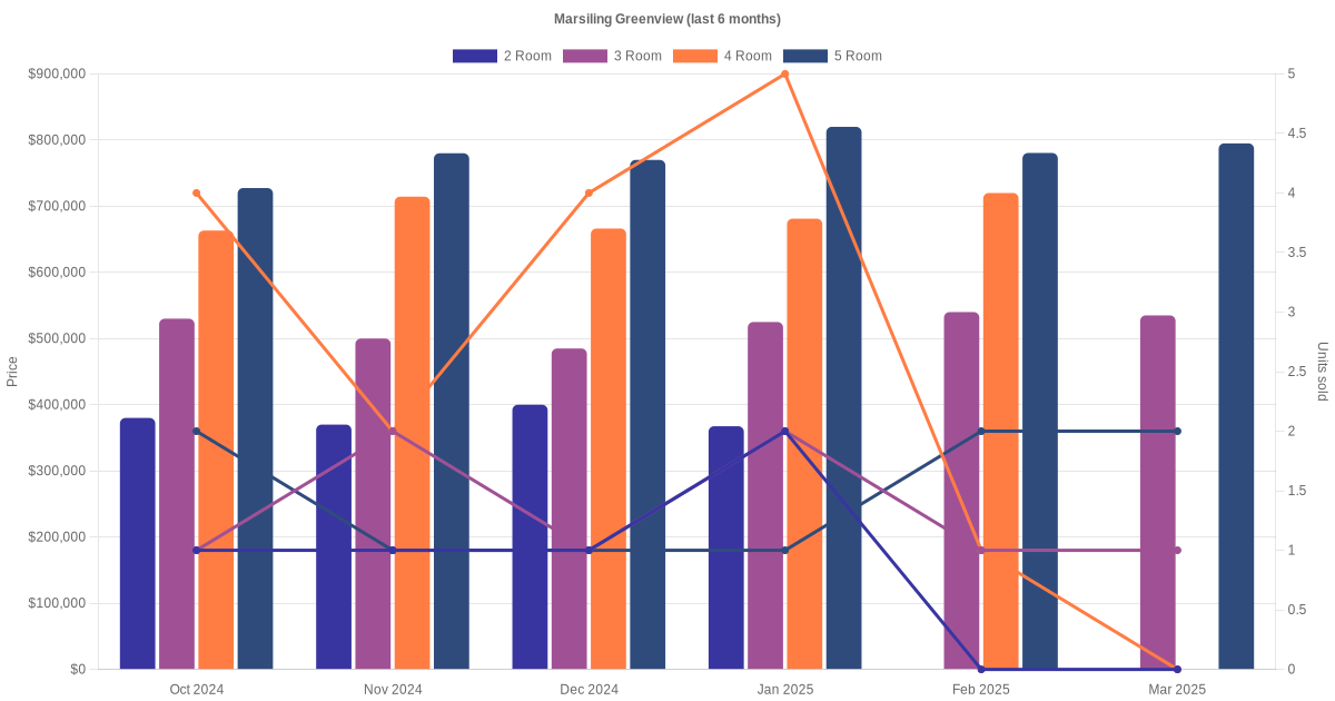 There were a total of 251 resale transactions in the last 3 years for HDB flats at Marsiling Greenview. The latest recorded transaction was in Jan 2026.