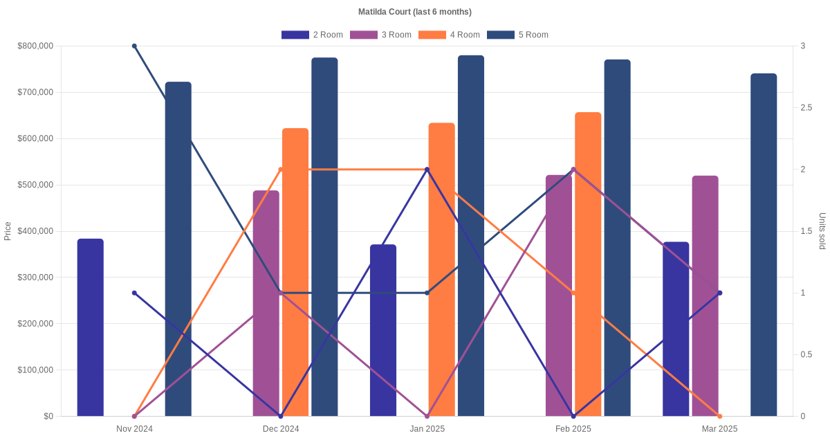 There were a total of 262 resale transactions in the last 3 years for HDB flats at Matilda Court. The latest recorded transaction was in Jan 2026.