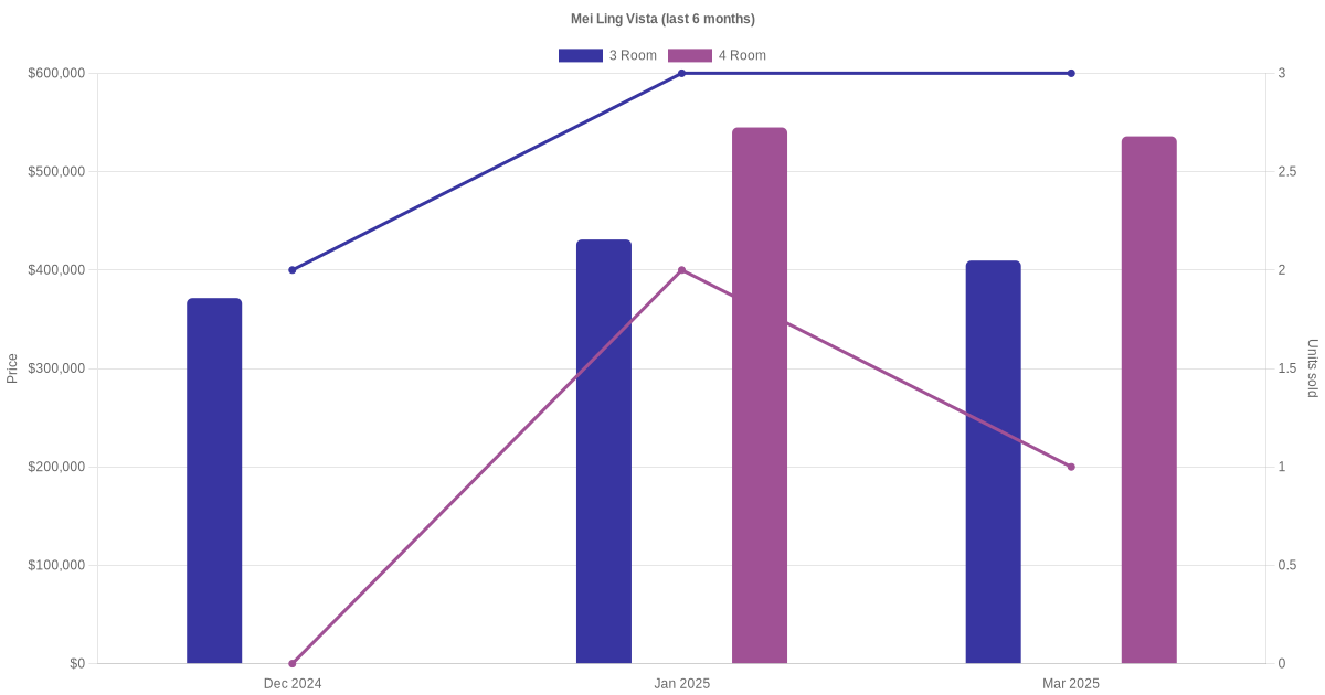 There were a total of 49 resale transactions in the last 3 years for HDB flats at Mei Ling Vista. The latest recorded transaction was in Dec 2025.