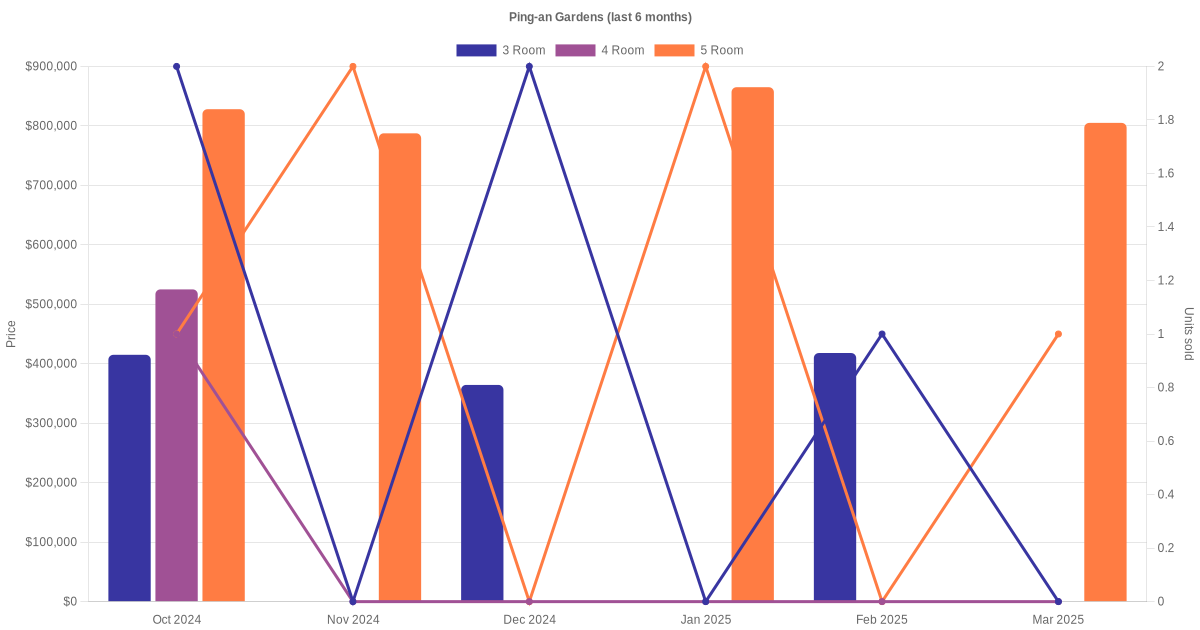There were a total of 79 resale transactions in the last 3 years for HDB flats at Ping-an Gardens. The latest recorded transaction was in Jan 2026.