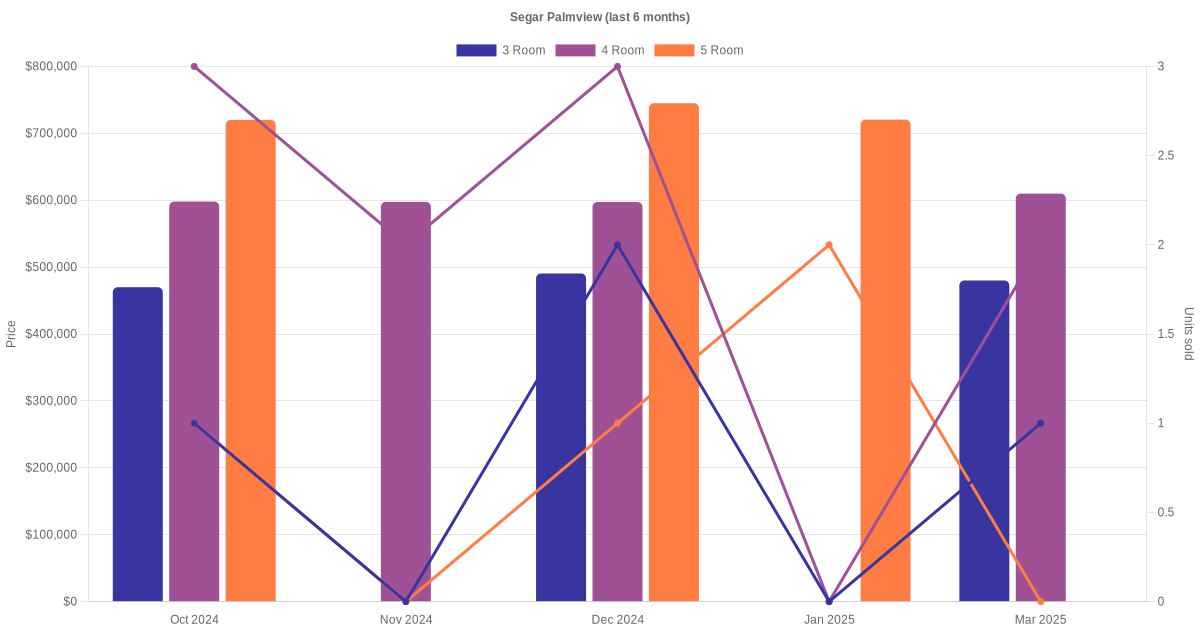 There were a total of 94 resale transactions in the last 3 years for HDB flats at Segar Palmview. The latest recorded transaction was in Dec 2025.