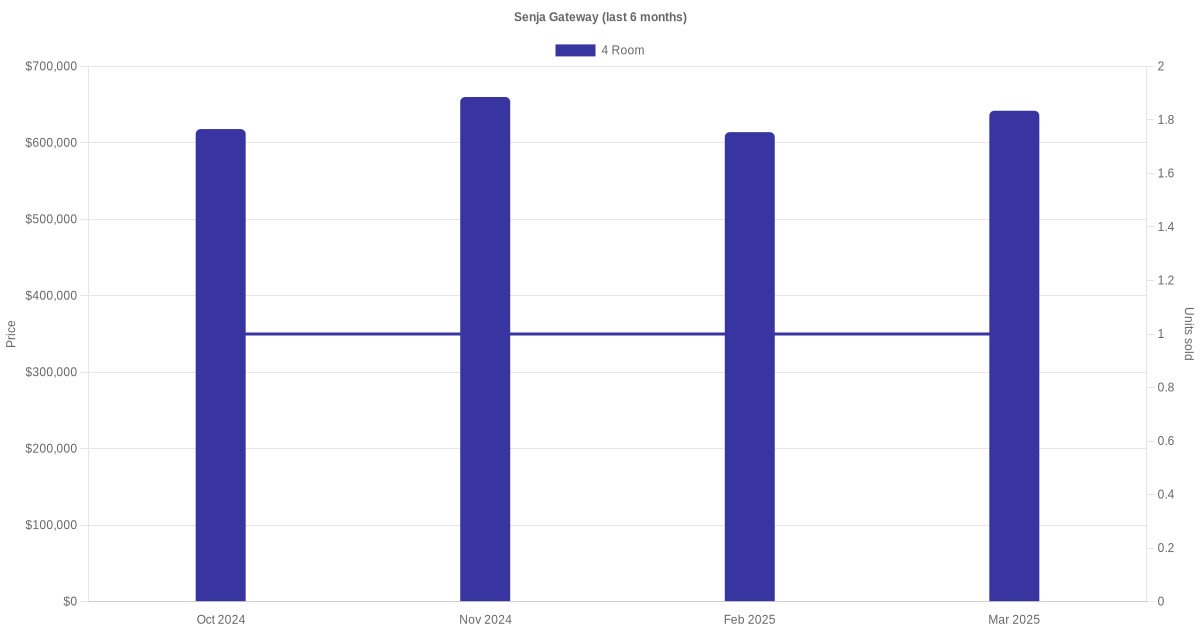 There were a total of 59 resale transactions in the last 3 years for HDB flats at Senja Gateway. The latest recorded transaction was in Jan 2026.