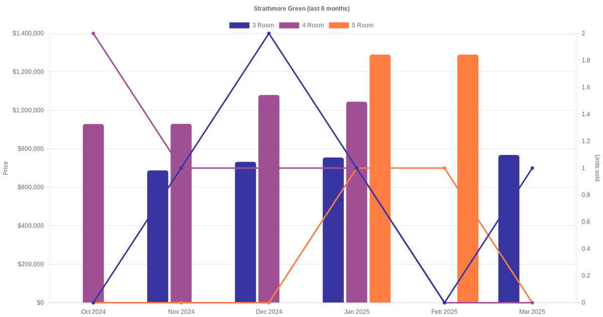 There were a total of 60 resale transactions in the last 3 years for HDB flats at Strathmore Green. The latest recorded transaction was in Dec 2025.