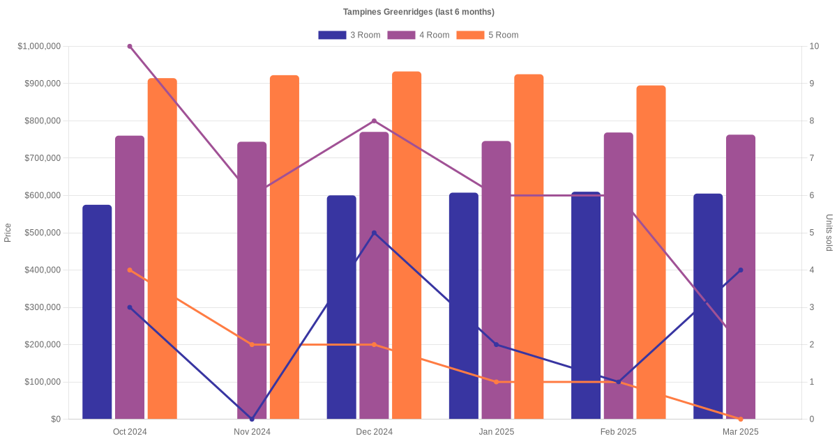There were a total of 396 resale transactions in the last 3 years for HDB flats at Tampines Greenridges. The latest recorded transaction was in Jan 2026.