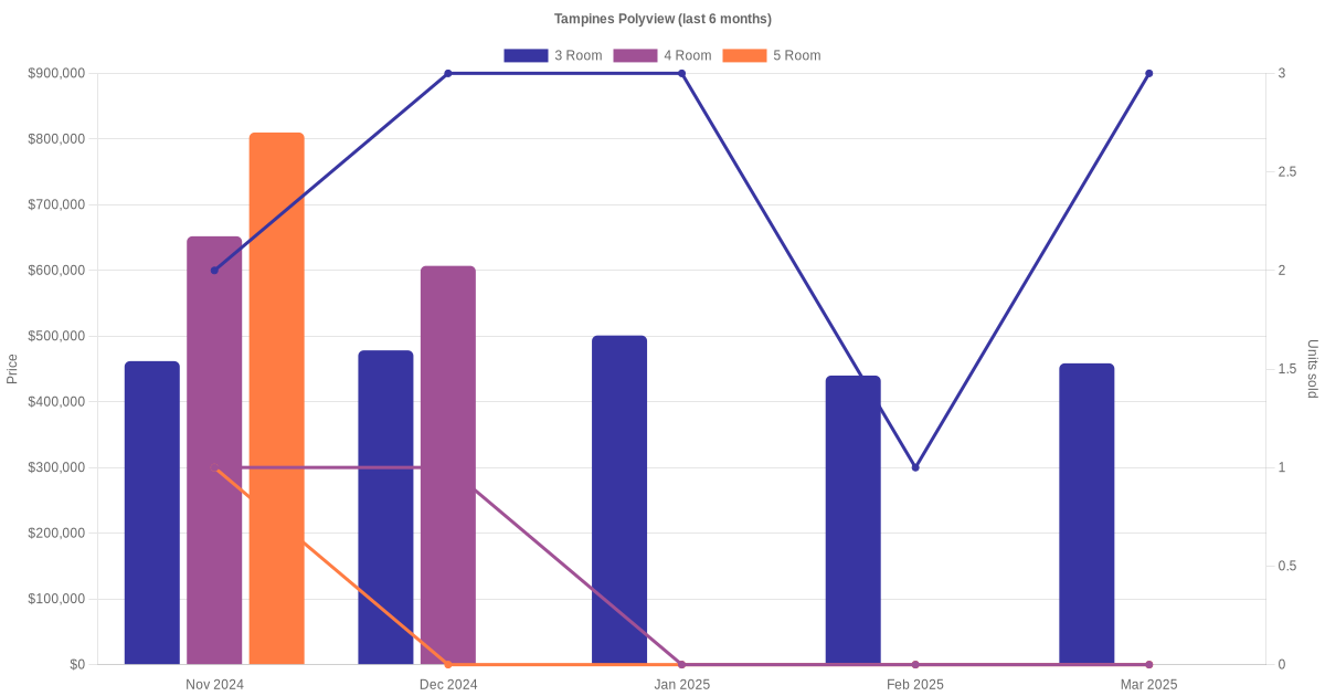 There were a total of 150 resale transactions in the last 3 years for HDB flats at Tampines Polyview. The latest recorded transaction was in Dec 2025.