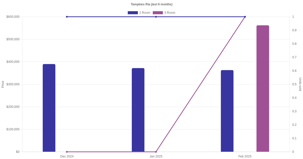 There were a total of 22 resale transactions in the last 3 years for HDB flats at Tampines Ria. The latest recorded transaction was in Nov 2025.