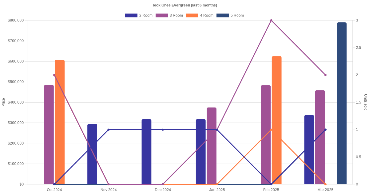 There were a total of 86 resale transactions in the last 3 years for HDB flats at Teck Ghee Evergreen. The latest recorded transaction was in Jan 2026.