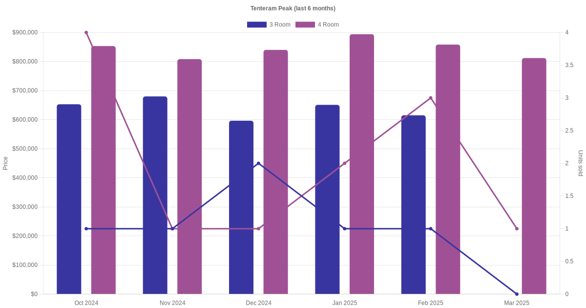 There were a total of 157 resale transactions in the last 3 years for HDB flats at Tenteram Peak. The latest recorded transaction was in Dec 2025.