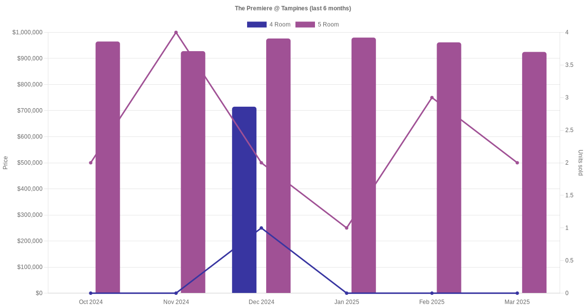 There were a total of 62 resale transactions in the last 3 years for HDB flats at The Premiere @ Tampines. The latest recorded transaction was in Dec 2025.