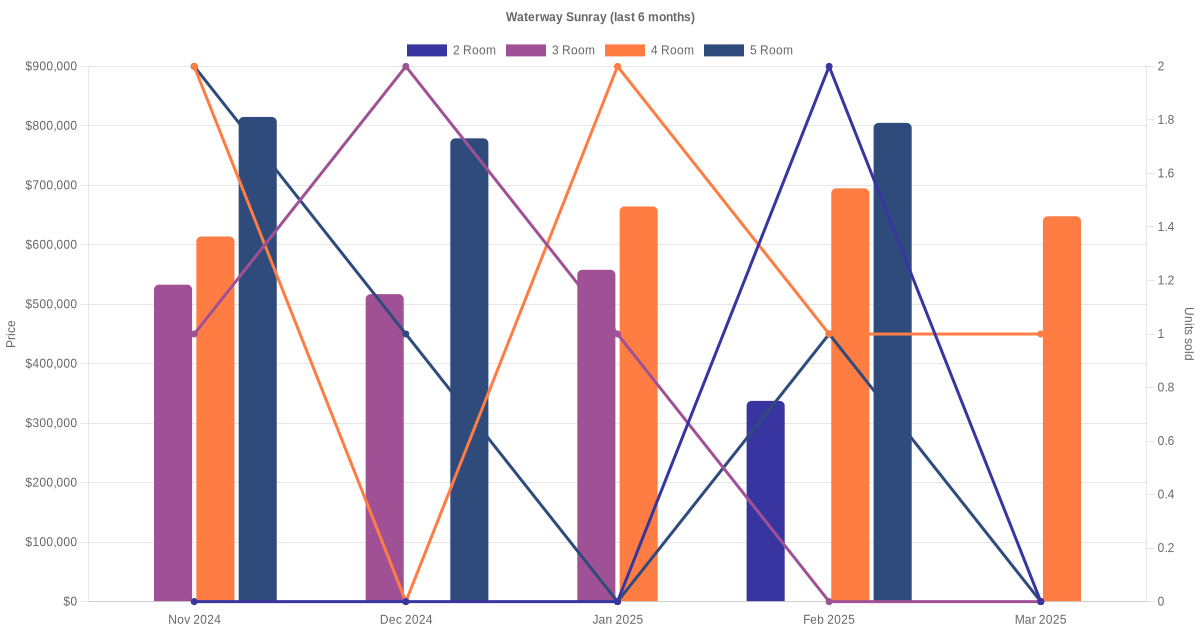 There were a total of 32 rental transactions in the last 3 years for HDB flats at Waterway Sunray. The latest recorded transaction was in Dec 2025.