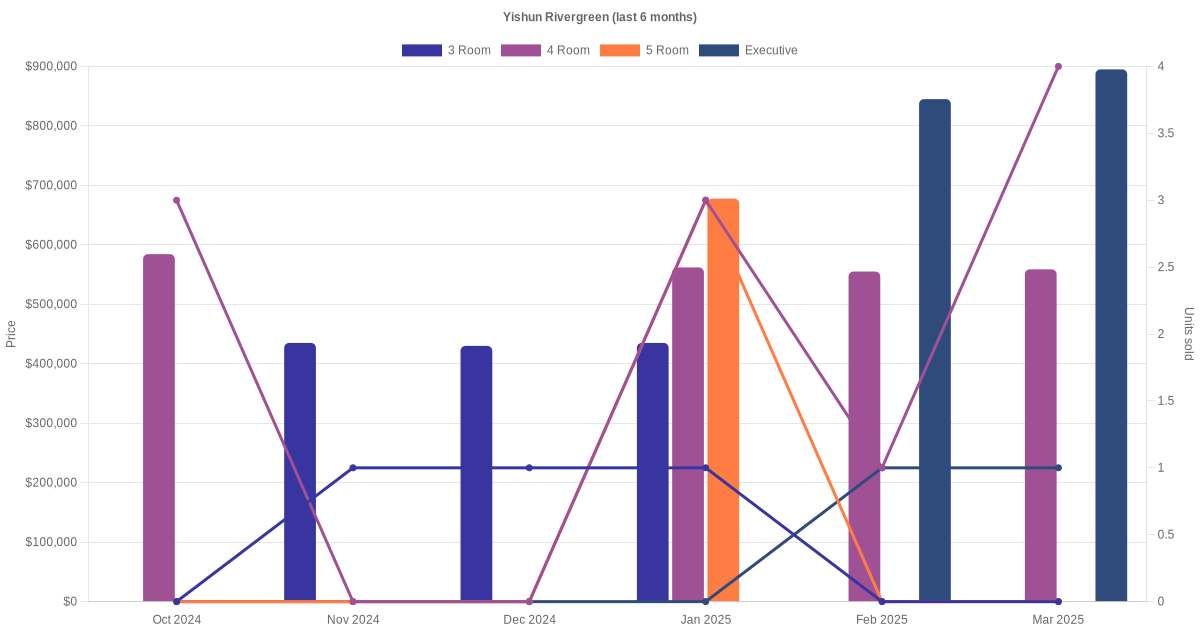 There were a total of 145 resale transactions in the last 3 years for HDB flats at Yishun Rivergreen. The latest recorded transaction was in Jan 2026.